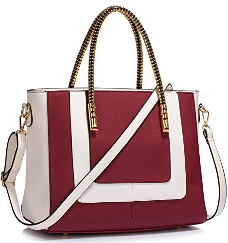 Best Seller! LeahWard Women's Large Nice Great Handbags College Work Tote Shoulder Bags 318 (Burgundy/White) Review
