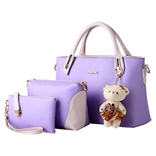 MissFox offer MissFox Women 3 Piece Tote Bag Zipper Handbag Purse Bags Set Purple. This awesome product currently limited units, you can buy it now for £17.57, You save -